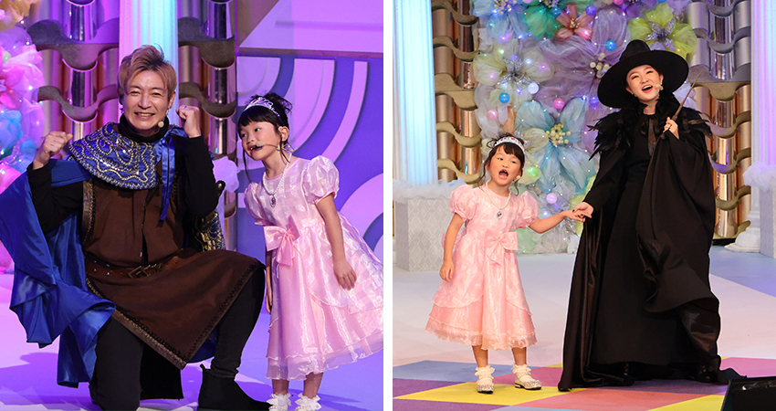 コンクールの審査結果を待つ間、ステージでは40周年を飾る豪華ゲストが、数々の童謡を取り入れたオリジナルミュージカル『童謡のくに〜ののか姫と歌の魔女〜』を披露。9大会ぶりのゲスト出演となるつるの剛士さんをはじめ、当コンクール出身のさくらまやさんと村方乃々佳さん、応援サポーターのいっちー&なるが迫真の演技と歌唱で客席を沸かせました。そして会場をさらに熱くさせたのは、ののちゃんが歌う「いぬのおまわりさん」!自身が2020年の第35回大会にて「こども部門」銀賞を史上最年少(2歳5カ月)で獲得して以来の当コンクールでの歌唱となり、会場は大きな興奮と感動に包まれました。